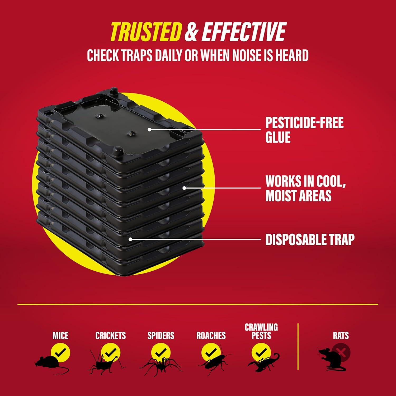 READY TO USE: Mouse and Insect Glue Traps attract mice, crickets, roaches & crawling pests. Separate traps from each other & place the sticky traps along known or suspected insect pathways. For best results, do not add bait as it decreases the effectiveness of the trap.