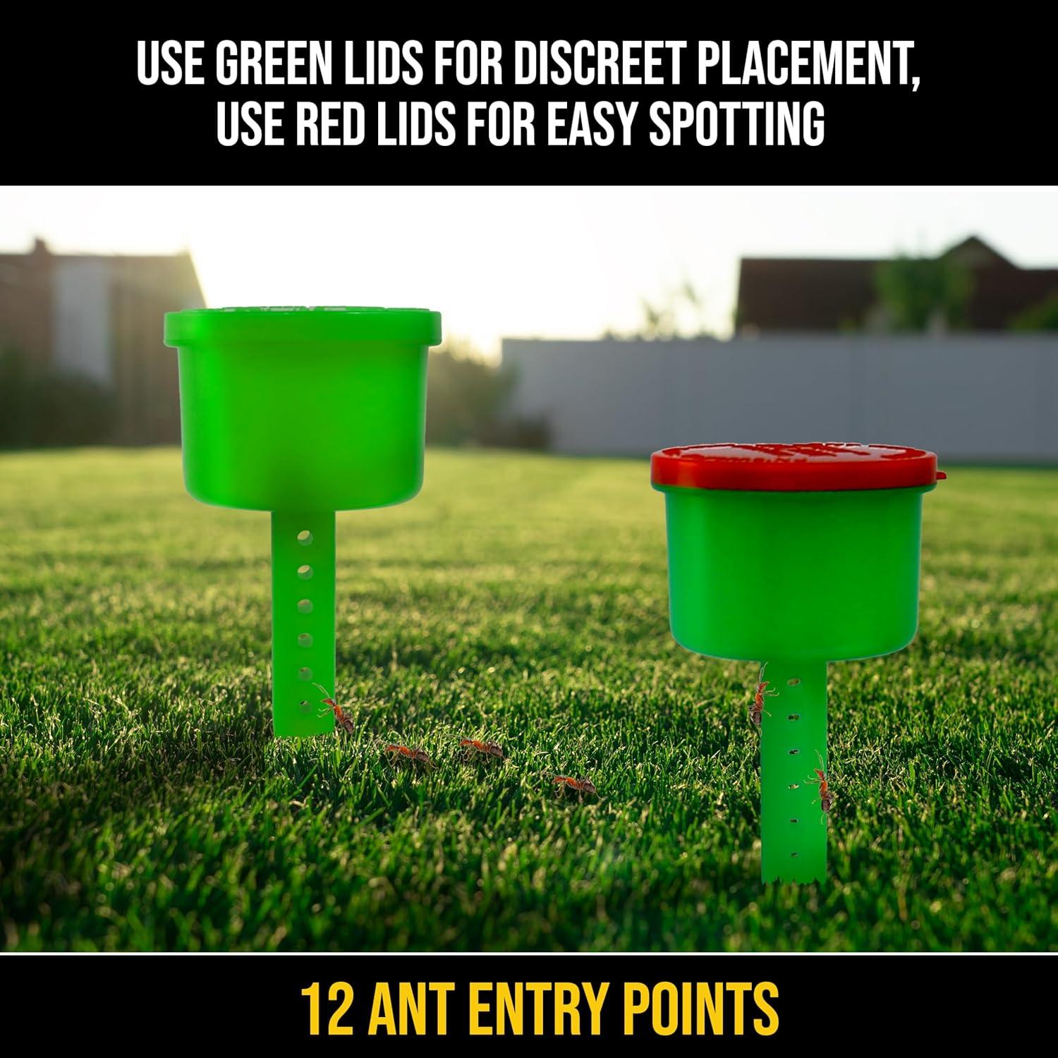 DUAL LIDS: Use the red lids to quickly locate the ant bait cups in outdoor spaces or opt for the green lids to blend seamlessly into yards or lawns. Choose the lid color that best suits your environment and pest control needs.