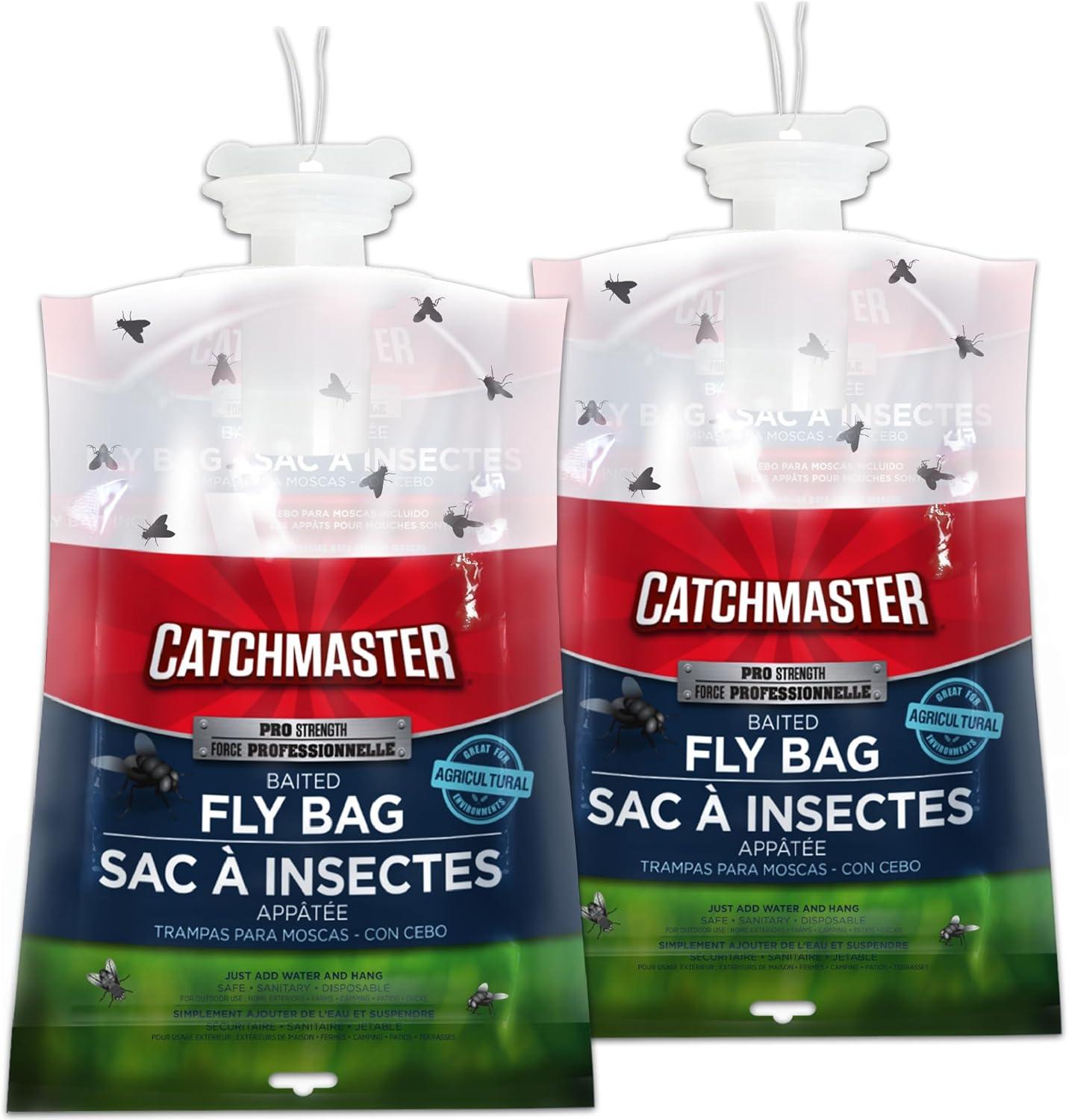 SUPER EFFECTIVE OUTDOOR FLY CONTROL: Our 2-Pack Pro Series Disposable Fly Bag Traps have a catch capacity of up to 30,000 flies and are 100% larger than comparable fly bags. Hang several fly trap bags outdoors 10-30 feet from your home to significantly reduce problems with flies getting inside. The non-toxic fly bait attracts flies from a distance of 30-40 feet away! Use our outdoor fly killer for pest control management around your home and yard.