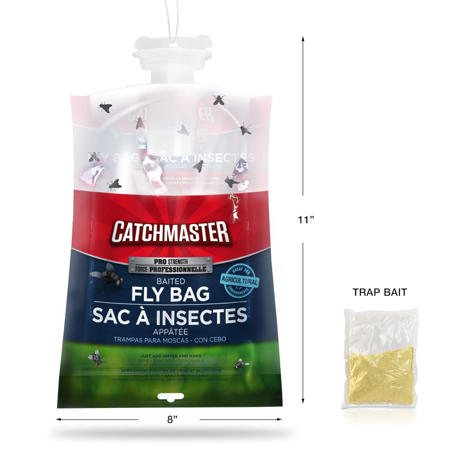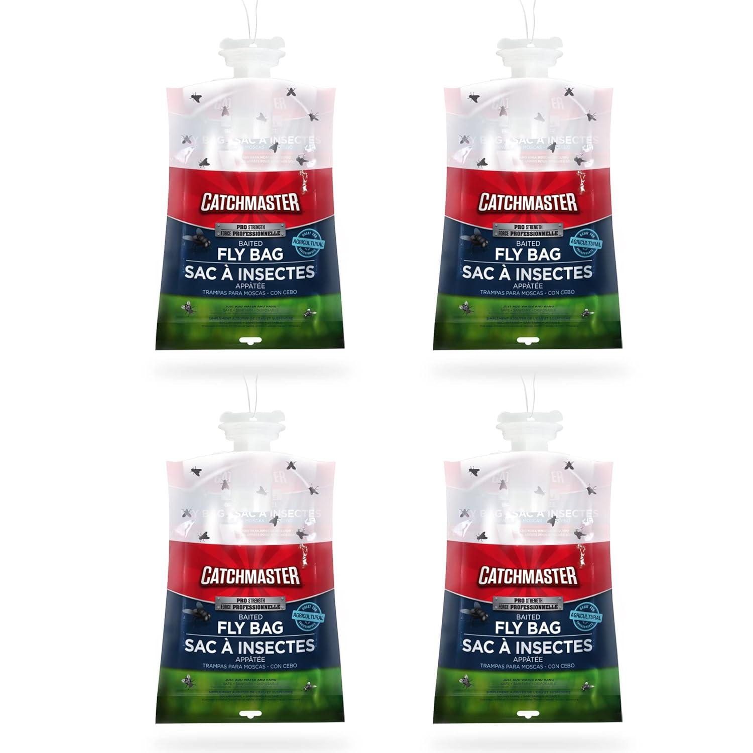 SUPER EFFECTIVE OUTDOOR FLY CONTROL: Our 4-Pack Pro Series Disposable Fly Bag Traps have a catch capacity of up to 30,000 flies and are 100% larger than comparable fly bags. Hang several fly trap bags outdoors 10-30 feet from your home to significantly reduce problems with flies getting inside. The non-toxic fly bait attracts flies from a distance of 30-40 feet away! Use our outdoor fly killer for pest control management around your home and yard.