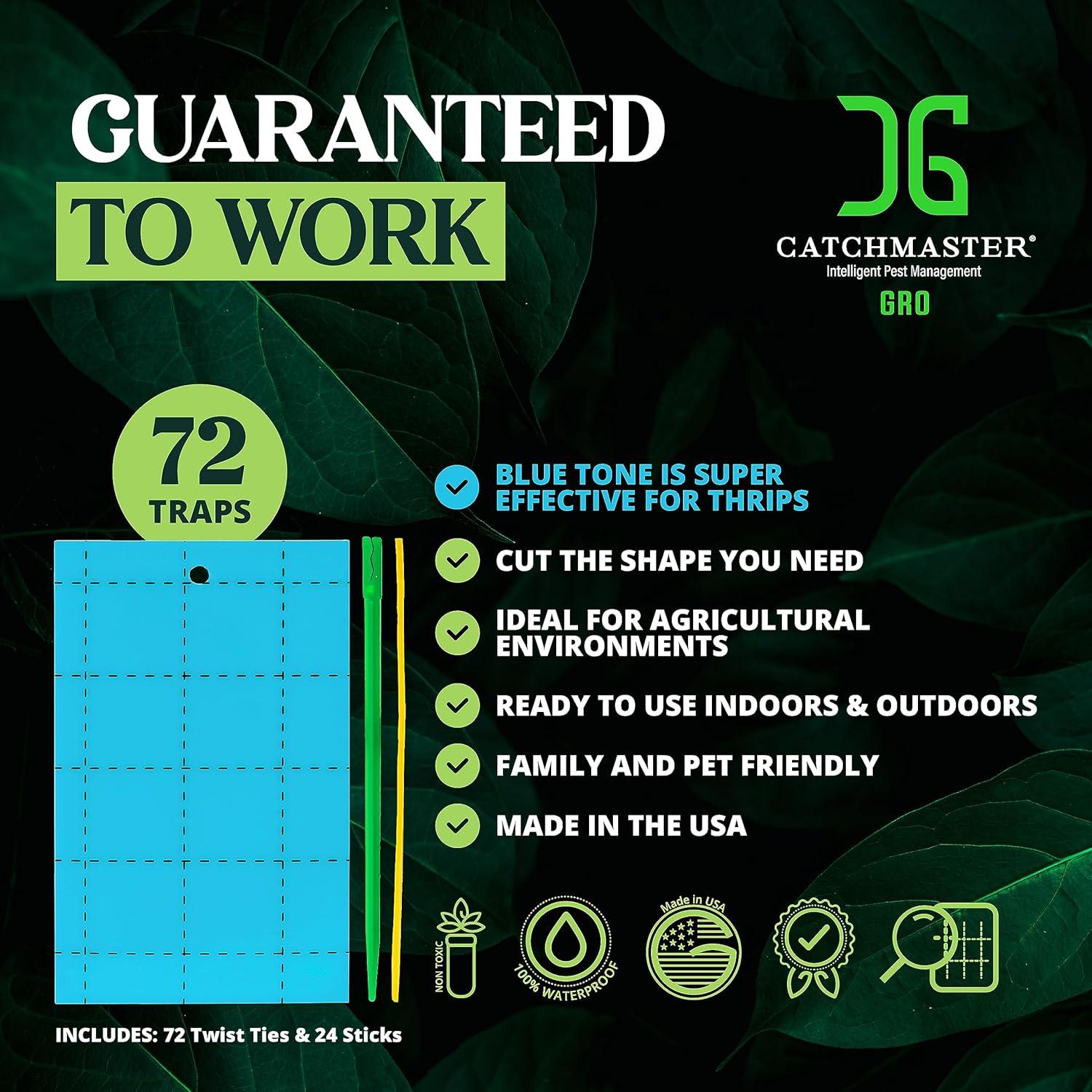 imageCatchmaster GRO Yellow PreCut Ready to Use Sticky Traps 50PK Bug ampamp Fly Trap with Center Hole for Crawling Insects Pest Control for Home Garden ampamp Greenhouse Protect Live Plants Indoor ampamp OutdoorBlue