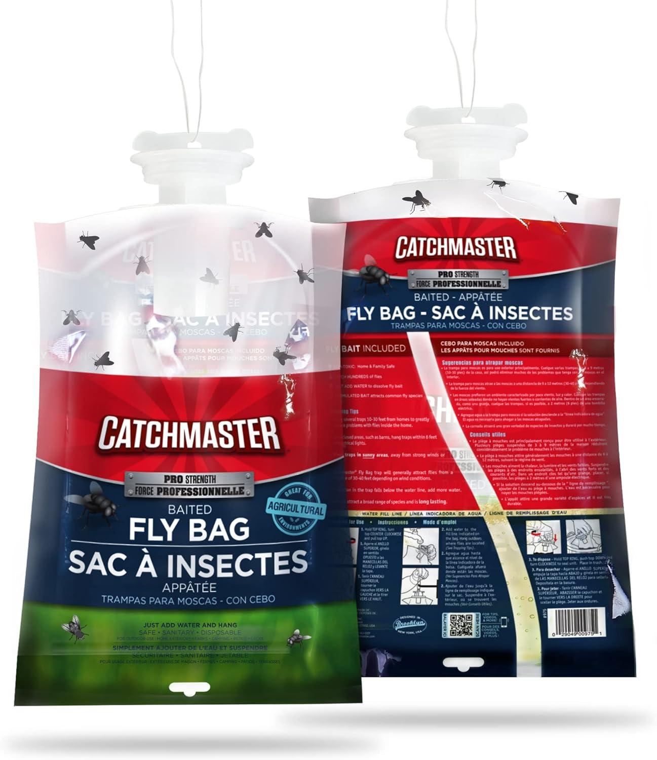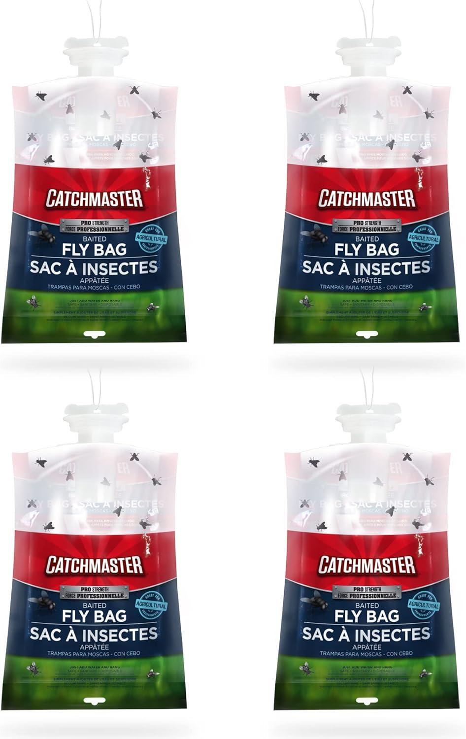 SUPER EFFECTIVE OUTDOOR FLY CONTROL: Our 4-Pack Pro Series Disposable Fly Bag Traps have a catch capacity of up to 30,000 flies and are 100% larger than comparable fly bags. Hang several fly trap bags outdoors 10-30 feet from your home to significantly reduce problems with flies getting inside. The non-toxic fly bait attracts flies from a distance of 30-40 feet away! Use our outdoor fly killer for pest control management around your home and yard.